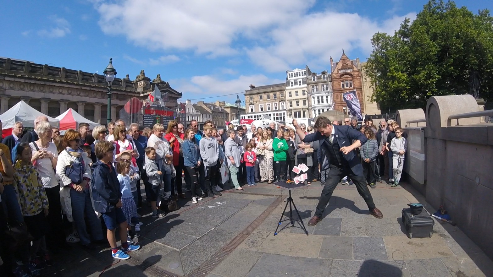 Since 2017, he has been a daily performer on the Royal Mile, entertaining tourists, locals and the occasional dog with his magic and comedy show. The show is highly adaptable and can be played for a few people or a few hundred. The show can run from between fifteen to forty five minutes.